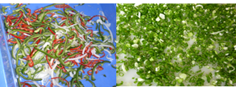 用途: 将各菜类如:芹菜、大葱、大白菜、高丽菜、菠菜、葱、大蒜、瓜类等物料切成片、丝状,适合食品加工业者配合自动化生产线。