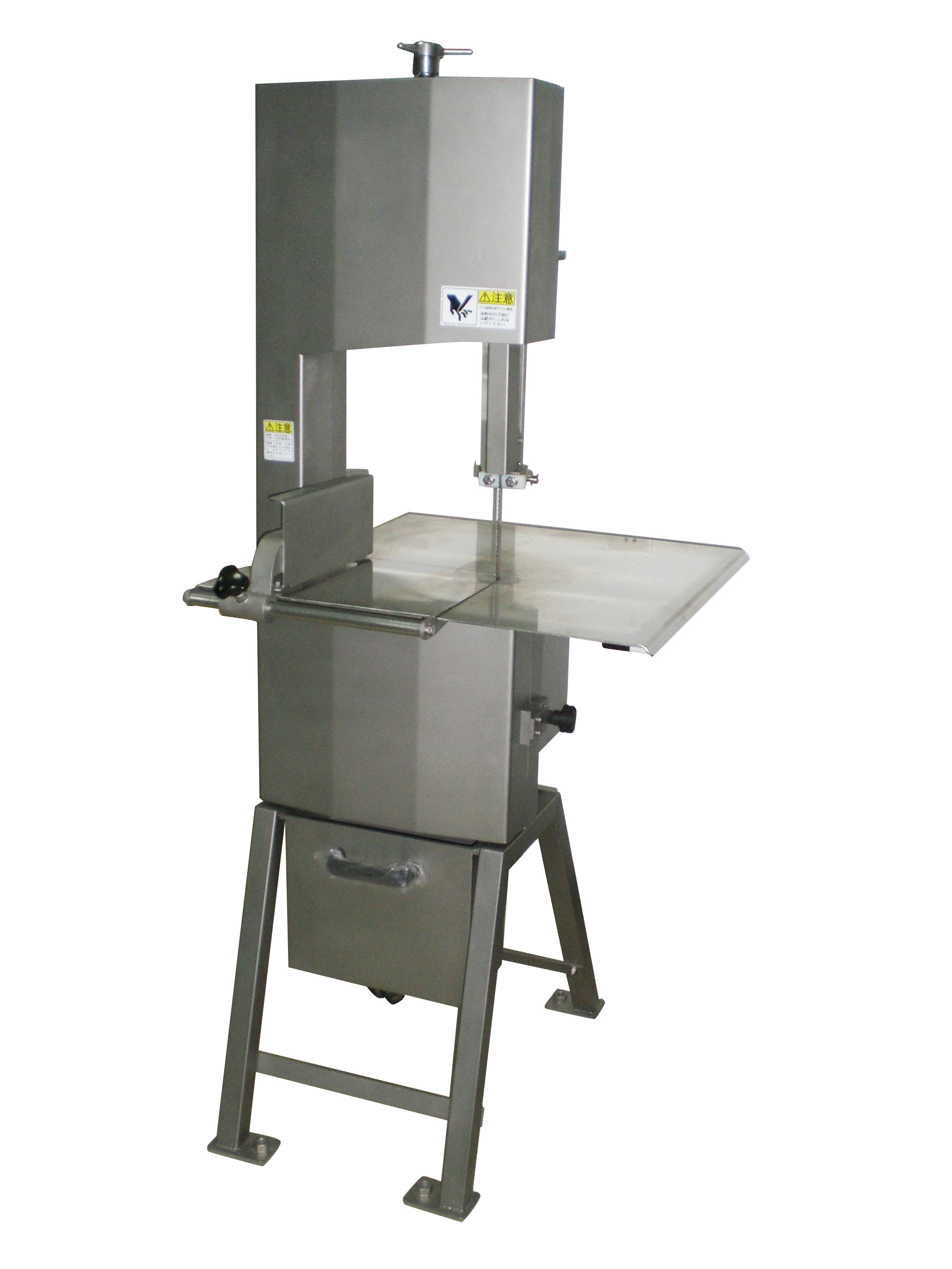 Characteristics: the machine all adopt stainless steel material, large floor type bone sawing machine, fixed working table; removable booster system, button control; motor brake system, motor protection system, independent removable protective door device.