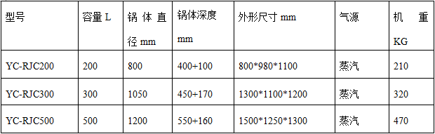 用途:本机作为煮粥、熬汤、煮饺子、物料溶化、消毒、加热、热烫、预煮、配制、熬制、蒸煮与浓缩烧菜与炖肉、炒馅之用,适用于糖果、糕点、饮料、果汁、果酱、蜜饯、乳品与罐头等食品加工及酿造、制酒、制药与日用化工等行业。